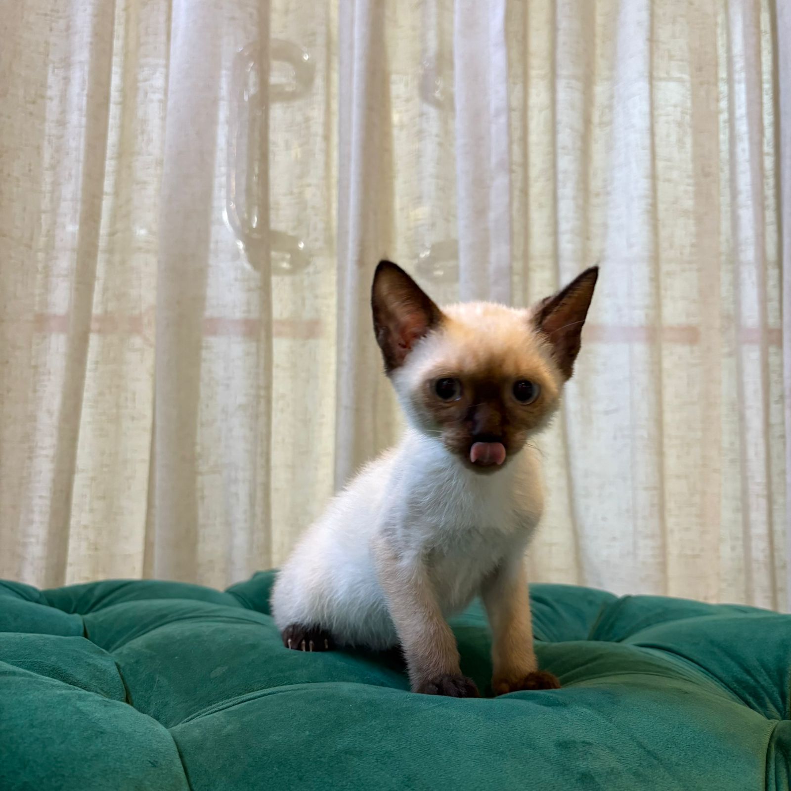 Like all Siamese cats, Basil has a sharp mind and an adventurous spirit. He loves exploring every corner of his environment, solving puzzles, and playing with interactive toys that challenge his cleverness.