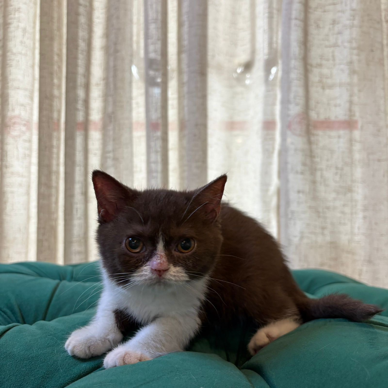 Meet Mimi, the Delightful Choco Bi-colour British Shorthair at Pets Habitat, Dubai – A Sweetheart with Sophisticated Style!